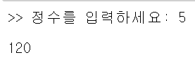 ## (힌트 : input 문으로 숫자를 받아 정수로 바꾼 후 for 문으로 팩토리얼 값을 계산한다.