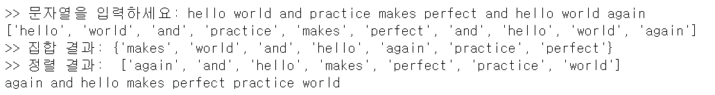 ## 3. 문자열을 받아서 중복된 단어를 제거하고 정렬된 순서로 출력하는 프로그램을 작성하여라.