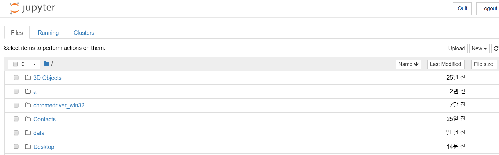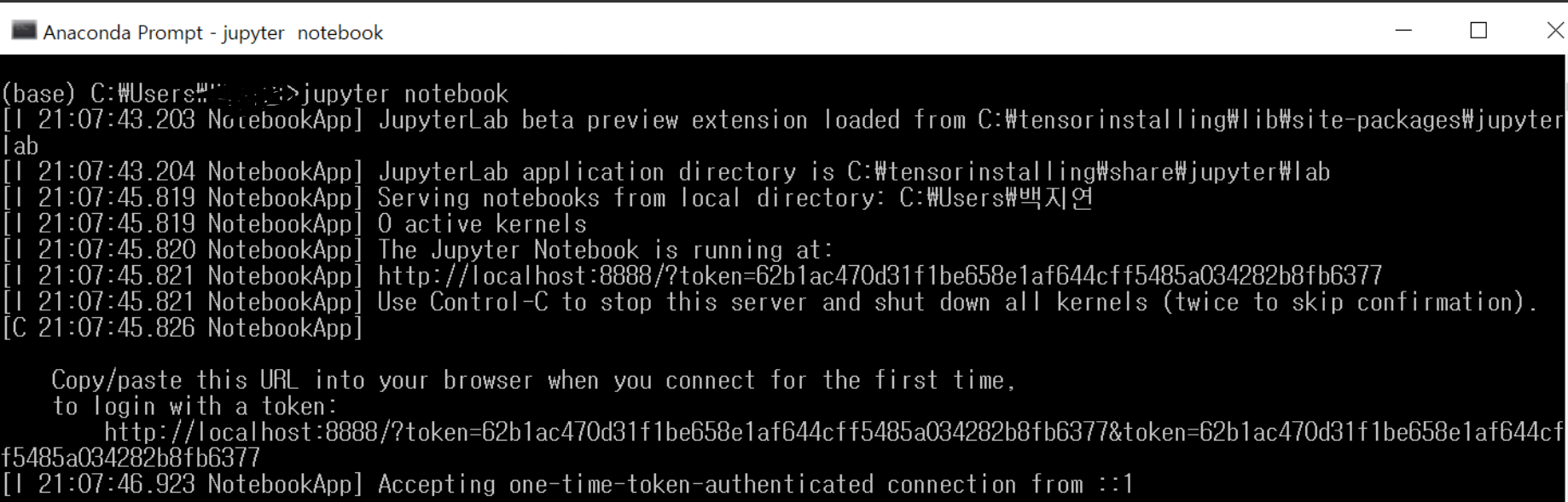 2. >> jupyter notebook 입력하면 몇 초 뒤에 웹브라우저가 실행된다.