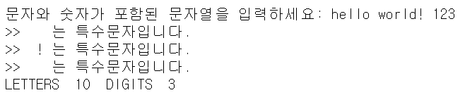 print('>> ',sentence[i],'는 특수문자입니다.')
