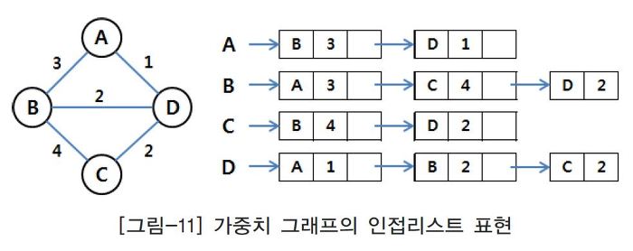 - 개념 : 연결 리스트 자료 구조 이용(파이썬은 2차원 리스트 이용)