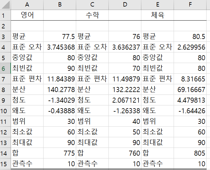 그럼 이제 데이터의 평균, 편차 등과 같은 데이터의 모양을 알아보겠다.