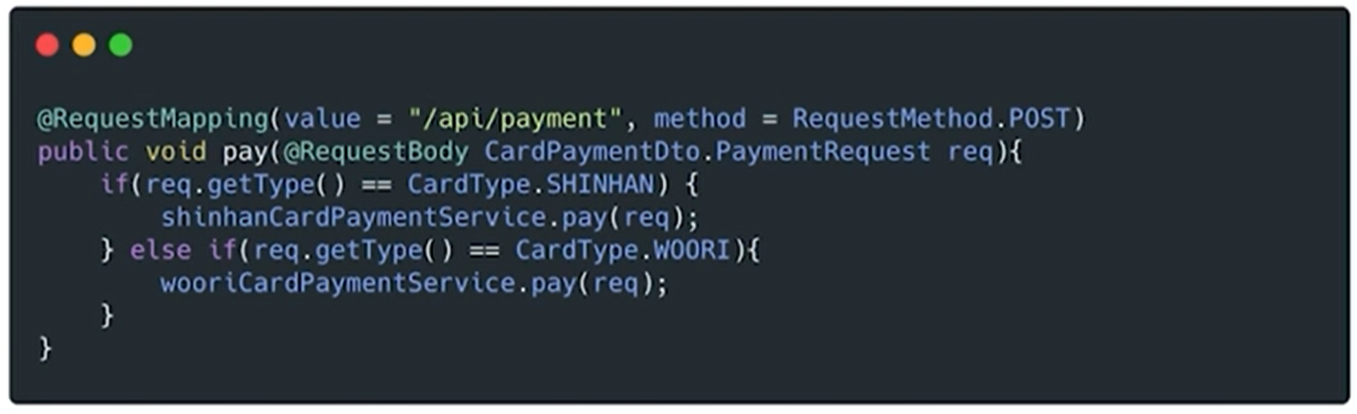 2) OCP 개방-폐쇄원칙 : 소프트웨어 요소는 확장에는 열려 있으나 변경에는 닫혀 있으나 변경에는 닫혀 있어야 한다. 변경을 위한 비용은 가능한 줄이고, 확장을 위한 비용은 가능한 극대화 해야 한다. 요구사항의 변경이나 추가사항이 발생하더라도, 기존 구성요소에는 수정이 일어나지 않고, 기존 구성 요소를 쉽게 확장해서 재사용한다. (추상화, 다형성)