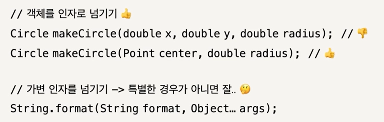 인수의 갯수는 0~2개가 적당하다. 3개 이상인 경우에는?