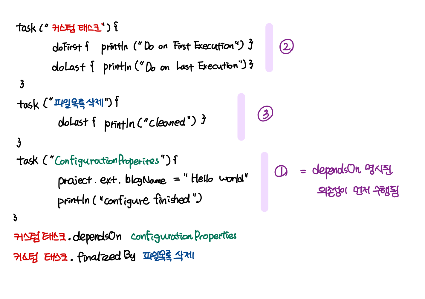 - dependsOn : 특정 태스크와 함께 동작한다.