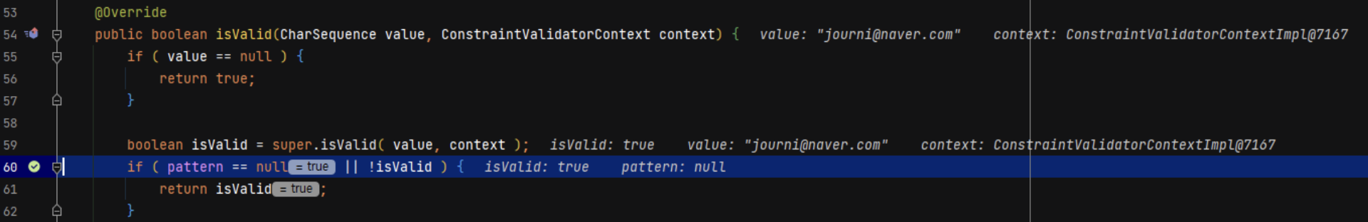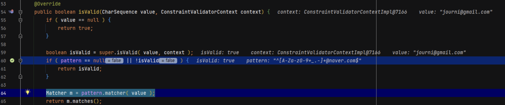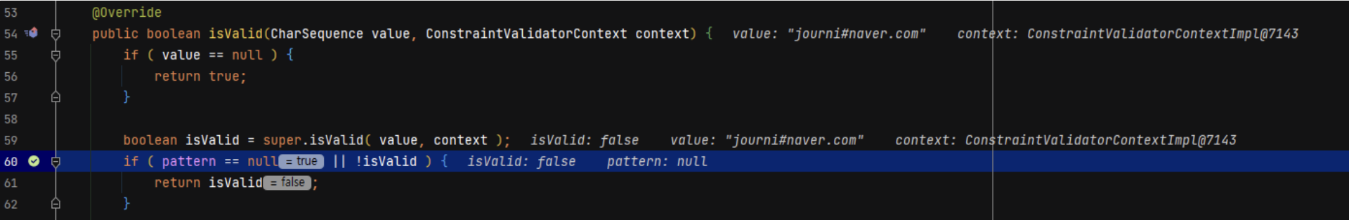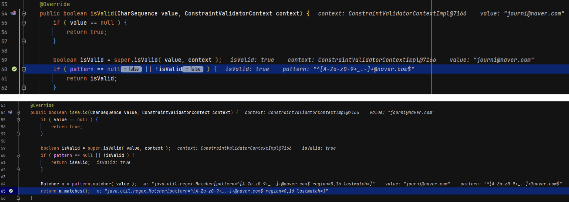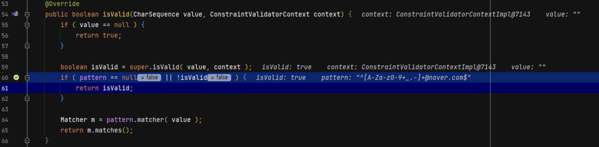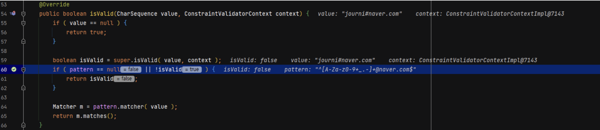 - 디버깅 EmailValidator.java >> isValid() >> super.isValid()