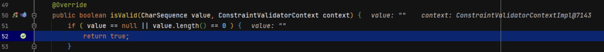 - 검증 통과 : AbstractEmailValidator 에서 email.length() == 0 이면 valid 로 간주한다.
