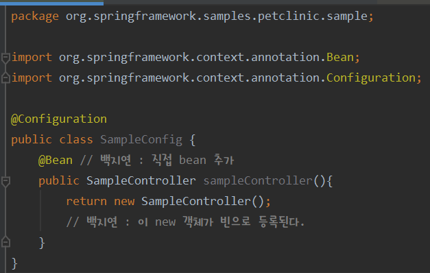 // 백지연 : applicationContext에 SampleController가 빈으로 등록되어 있는지 확인하는 테스트