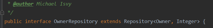 OwnerRepository.java는 좀 특이한 형태로 빈으로 등록이 된다. 스프링 데이터 jpa가 제공해주는 기능에 의해서 빈으로 등록이 된다. 이 경우에는 특정한 어노테이션이 없더라도 특정한 인터페이스를 상속 받은 경우에 이 인터페이스의 구현체를 내부적으로 만든다.