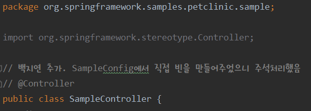 SampleControllerTest.java_저번 포스팅 코드 주석