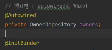// 백지연 : 빈 강의에서 autowired강의중 주석처리