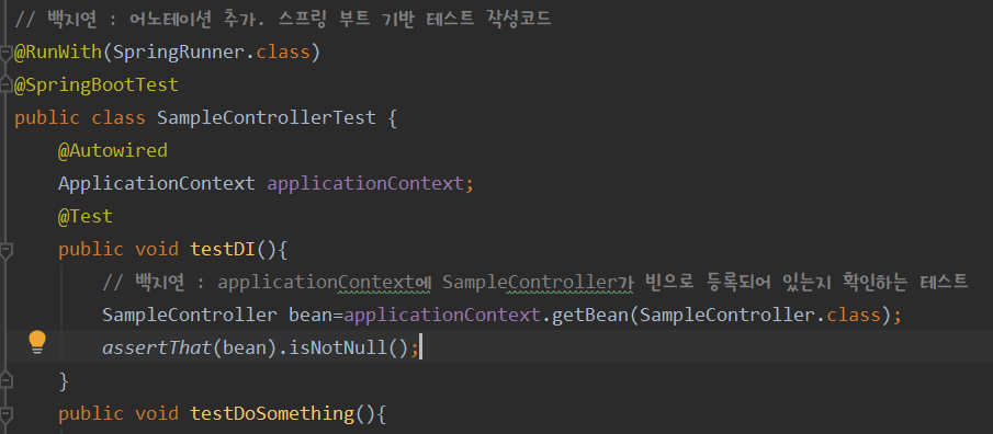 // 백지연 : 어노테이션 추가. 스프링 부트 기반 테스트 작성코드