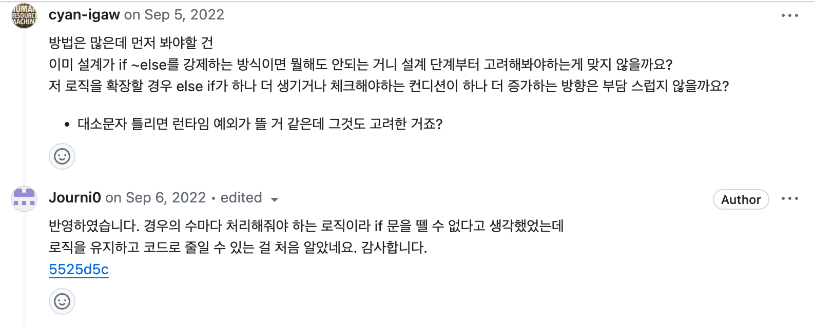 QA가 마무리된 후 하반기엔 코드 리팩토링과 추가 기능을 개발했다. 선임 개발자의 리뷰를 기반으로 코드를 개선하는 과정에서, 내딴에는 최선의 코드였는데 허점이 많음을 알게 되었다. 해결책을 알려주기 보다 이슈만 주셔서 정답을 찾기까지의 여정은 힘들었다. 끙끙거리다가 힌트를 구걸해 가며 개선해 나갔다. 특히 if 문 뎁스를 줄이는 작업이 기억에 남는다. 조건이 필요한데 조건문을 어떻게 안쓰지, 왜 나에게 이런 시련이 오는가 힘들어했는데, map을 활용하여 if문을 최소화하는 방법을 배워 놀랐다. 머쓱타드ㅎㅎ 부족한 부분을 깨달음으로 삼아 클린 코드에 대한 공부를 진행하기로 마음 먹었다.