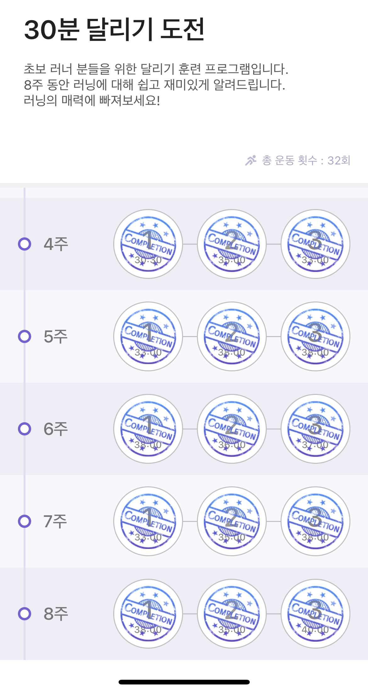 | 런데이 어플 30분 코스 달성하기 | O | 30분 코스 달성 | |