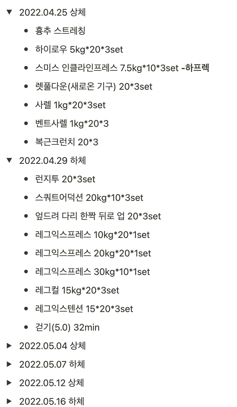 헬스장 매일 나가고 운동일지 쓰기 | O | 1월부터 9월까지 PT |