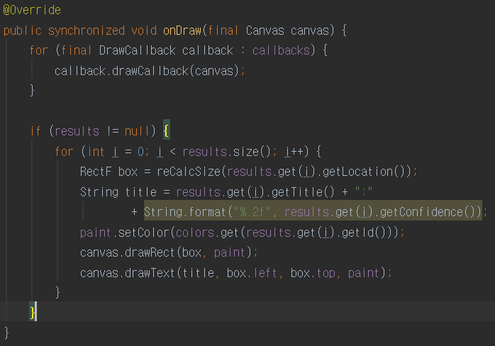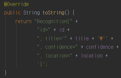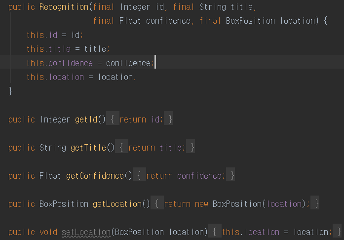 results 는 List<Recognition> 객체인데 어떤 모양인지 보자.