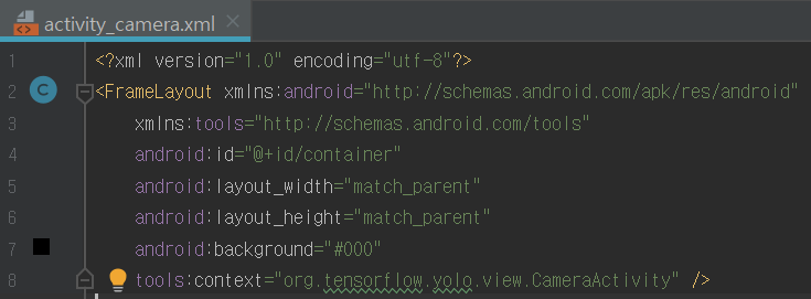 이 xml은 CameraActivity.java와 연결되어 있다.