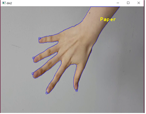 ④ 손 끝점 개수를 이용하여 가위(Scissors), 바위(Rock), 보(Paper)를 정한다.