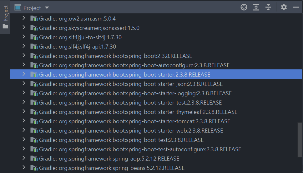 각 라이브러리들끼리 서로 의존 관계가 있습니다. 의존관계가 있는 라이브러리들은 직접 가져오지 않아도 자동으로 가져와 줍니다.(with Gradle) spring-boot라이브러리를 쓰면 core 라이브러리까지 가져옵니다.