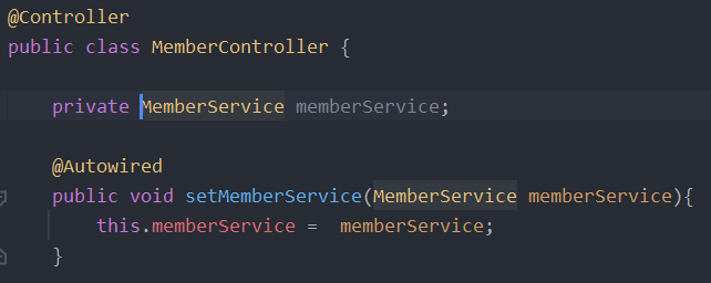 생성자를 통해서 MemberService가 MemberController에 주입이 됩니다.
