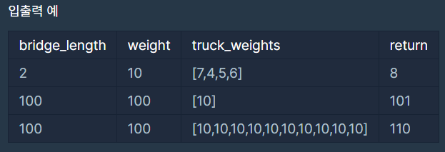 코딩테스트 연습 - 다리를 지나는 트럭