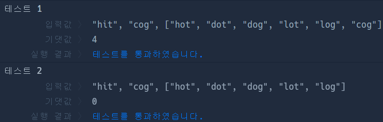 두 개의 단어 begin, target과 단어의 집합 words가 매개변수로 주어질 때, 최소 몇 단계의 과정을 거쳐 begin을 target으로 변환할 수 있는지 return 하도록 solution 함수를 작성해주세요.